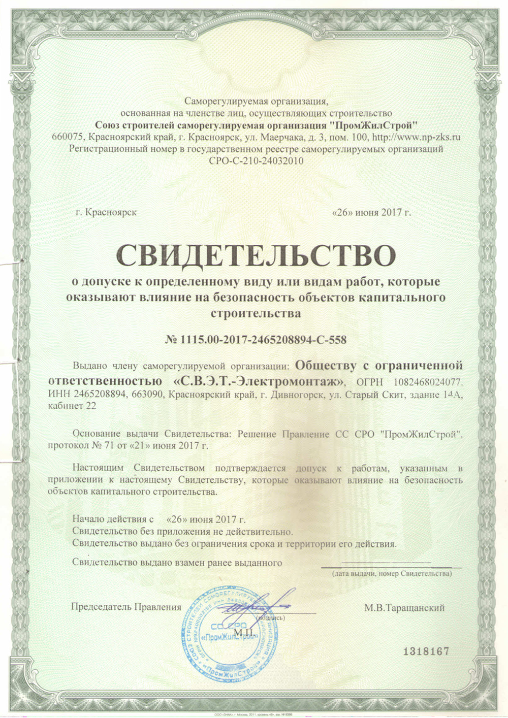 Проектные и монтажные работы, осуществляемые нашей компанией, проводятся на основании допуска СРО